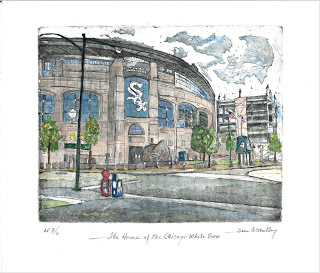 Enjoy my new etchings of Guarantee Rate Field and Wrigley Field